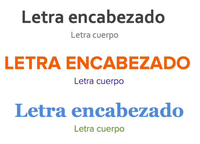 A continuación hay un ejemplo de algunas combinaciones de tipos de letra y colores. ¿Ves cómo los tipos de letra de encabezado destacan mucho más que los del cuerpo? También puedes ver cómo lucen las diferentes paletas de colores: La parte superior es monocromática, el medio es complementario y el fondo es análogo.