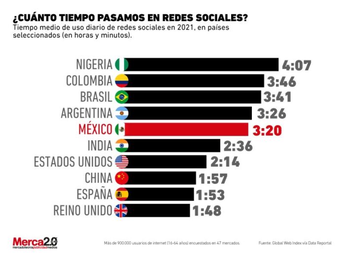 Puedes leer el artículo completo en: : Gráfica del día: ¿Cuánto tiempo pasamos conectados en redes sociales?