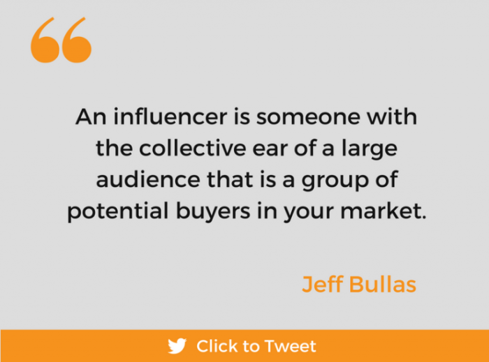 An influencer is someone with the collective ear of a large audience that is a group of potential buyers in your market. Typically, the influencer has cultivated a large following on social media. Sometimes, they may have a huge blog following, or an engaged, lengthy email list.