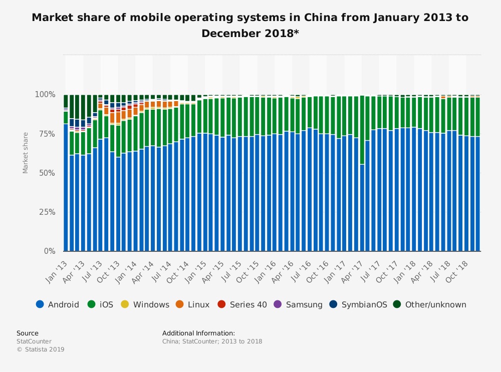 Con 2 mil millones de terminales activos funcionando con Android (a decir de la propia compañía) a nivel mundial, la pérdida de los fabricantes chinos que dominan el 71 por ciento del mercado en su país de origen supondría perder el 26.5 por ciento del total de terminales que operan bajo el OS de Google en el mundo.