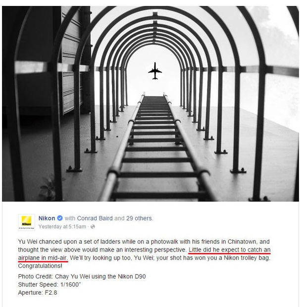 O cómo olvidad de lo que pasó en un concurso de fotografías organizado por Nikon Singapur, cuando la imagen “Look Up” obtuvo el primer premio.